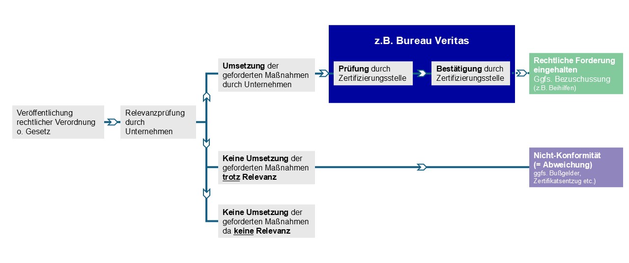 Viele rechtliche Verordnungen und Gesetze sehen eine Prüfung und Bestätigung durch unabhängige Zertifizierungsstellen wie beispielsweise Bureau Veritas vor. Die Öko-Module von Bureau Veritas unterstützen Unternehmen dabei, gesetzliche Vorgaben und Richtlinien einzuhalten. In einer Welt, in der die Bedeutung nachhaltiger Praktiken unaufhaltsam wächst, sind die Öko-Module eine Unterstützung für eine umfassende und zukunftsorientierte unternehmerische Ausrichtung.