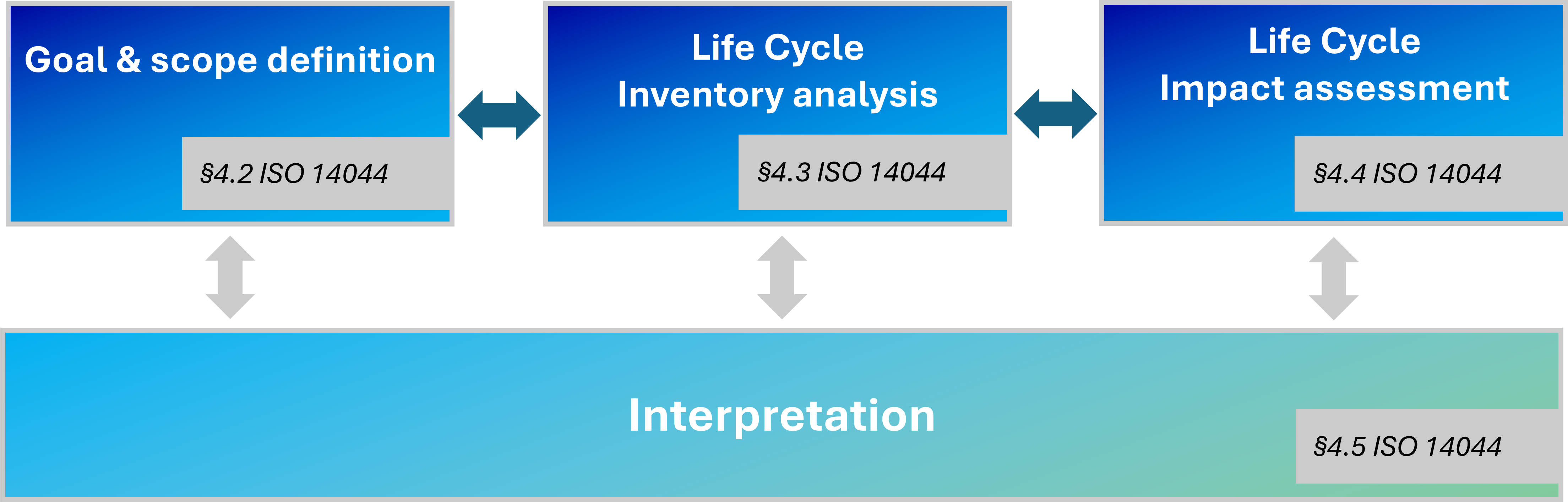 Die Methodik der Ökobilanzierung, die international durch die Normen ISO 14040 und ISO 14044 standardisiert ist, umfasst vier Hauptschritte: